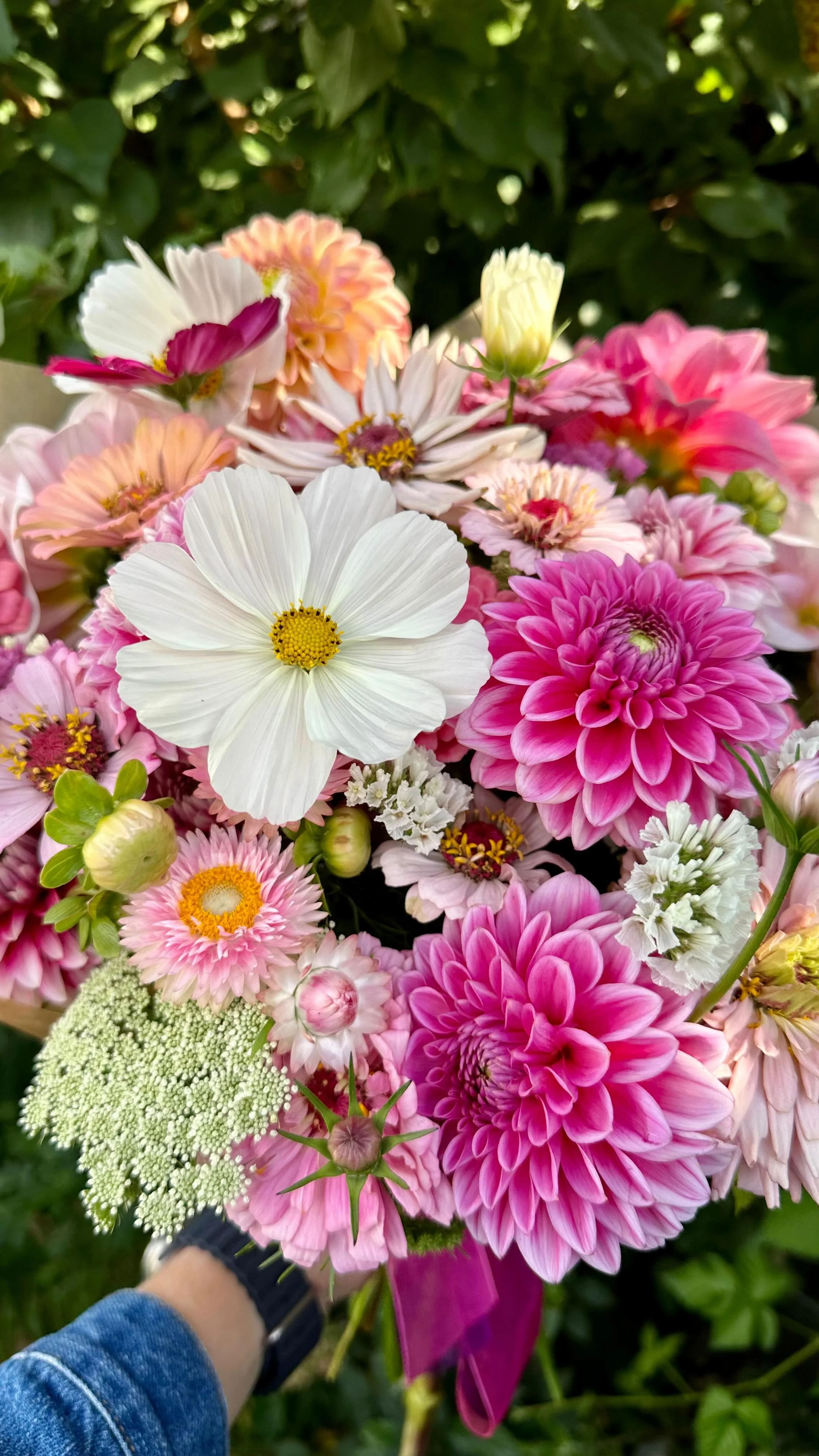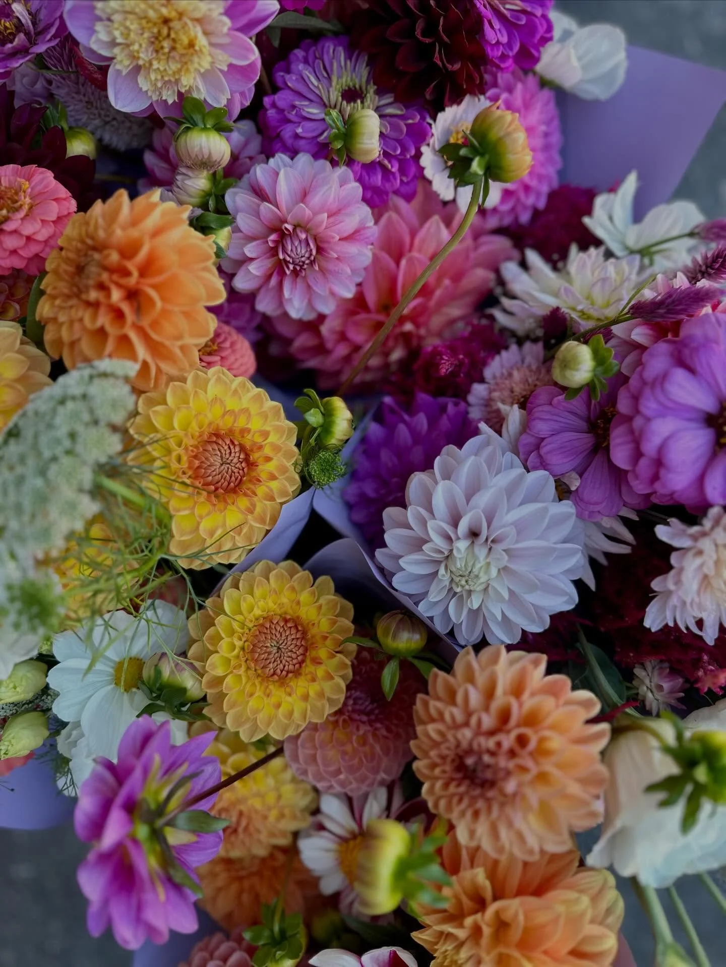 A bouquet of fresh, locally grown flowers — thoughtfully arranged and ready to brighten someone’s day (or your own).