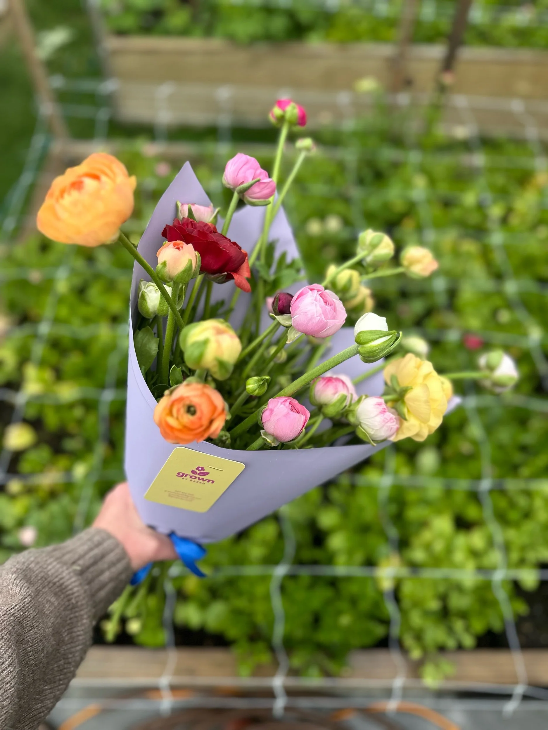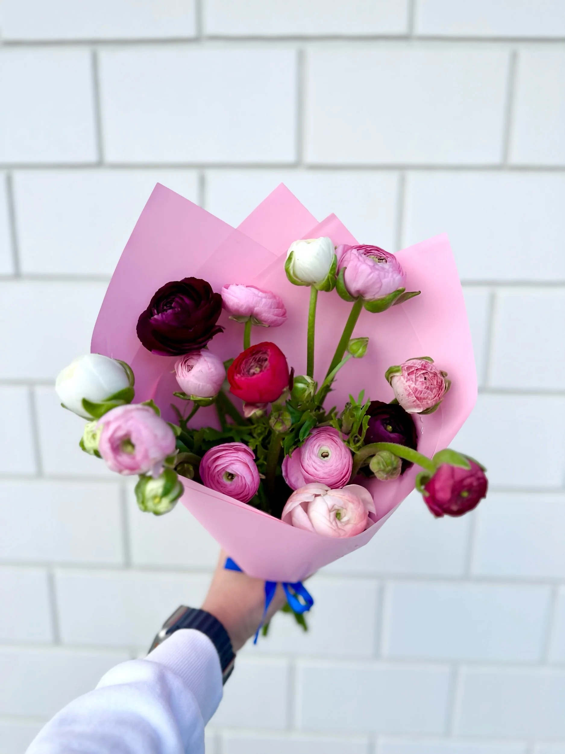 Each bouquet is made entirely of ranunculus, freshly harvested to order — no imports, just seasonal flowers grown with care. Their natural elegance makes them perfect for birthdays, thank-yous, anniversaries, or simply treating yourself.
